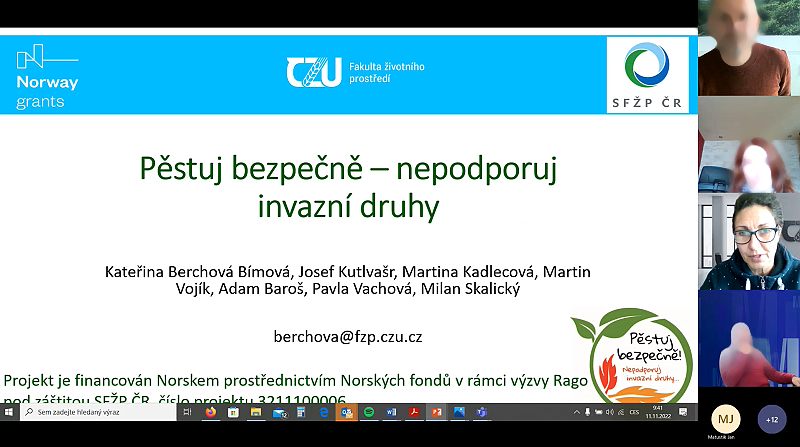 Principal investigator Kateřina Berchová-Bímová presented the project Grow safely – do not support invasive plant species at the online workshop, which took place on November 11, 2022 as the 3rd of the workshops within the UNILEAD project (University leaders in Sustainable Development Goals) under the leadership of Masaryk University. At the workshop focused on university campuses, their role and use, were presented lectures by: